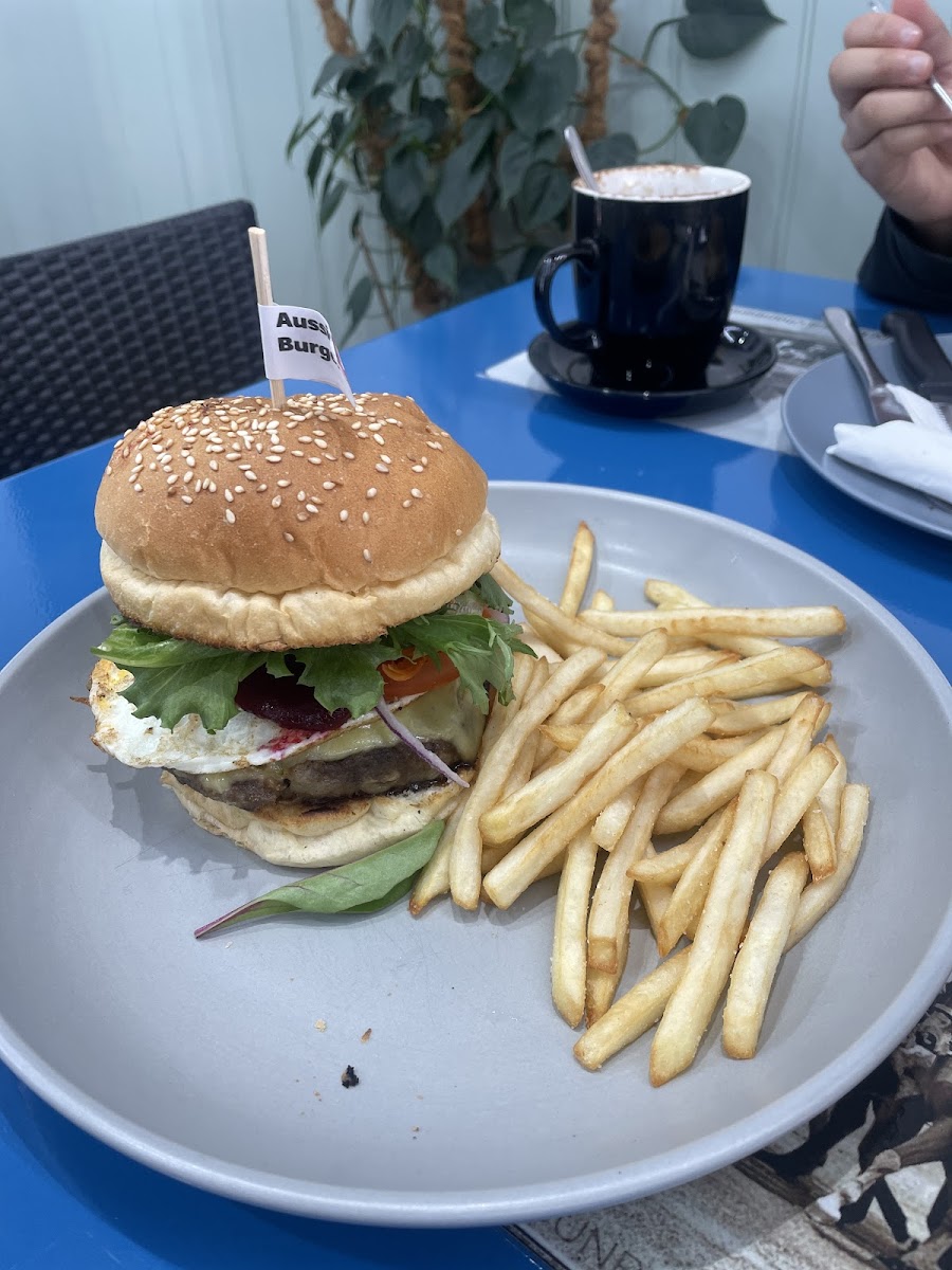 The cafe’s menu is brimming with flavor-packed dishes that bring a unique twist to classic favorites. A standout on the menu is the Aussie Burger - a hearty and satisfying choice that’s perfect for those who love a great burger with all the right toppings. If you're looking for something a bit sweeter, the Blueberry Pancakes are a must-try. Fluffy, sweet, and topped with fresh blueberries, they’re a perfect treat to start your day or enjoy during a leisurely brunch.